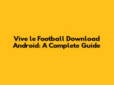 Download Vive Le Football On Android: A Complete Guide