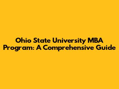 Ohio State MBA Program: A Comprehensive Guide